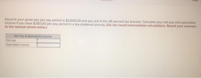 Solved Assume Your Gross Pay Per Pay Period Is 2 600 00 And Chegg Com